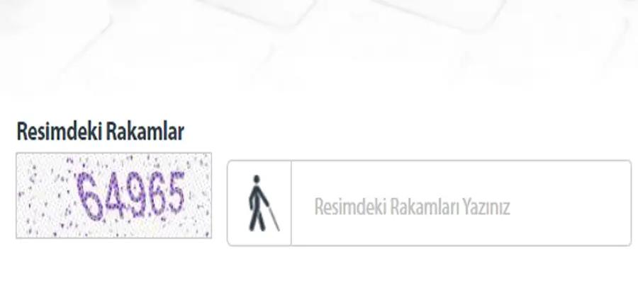 Resimdeki Rakamları Yazın: Sayfaya giriş yaptıktan sonra, güvenlik doğrulaması olarak karşınıza bir CAPTCHA ekranı çıkacaktır. Resimde görünen rakamları (örneğin: “64965”) doğru bir şekilde, sağdaki kutucuğa girin. Bu adım, işlemin güvenli bir şekilde gerçekleşmesi için gereklidir.